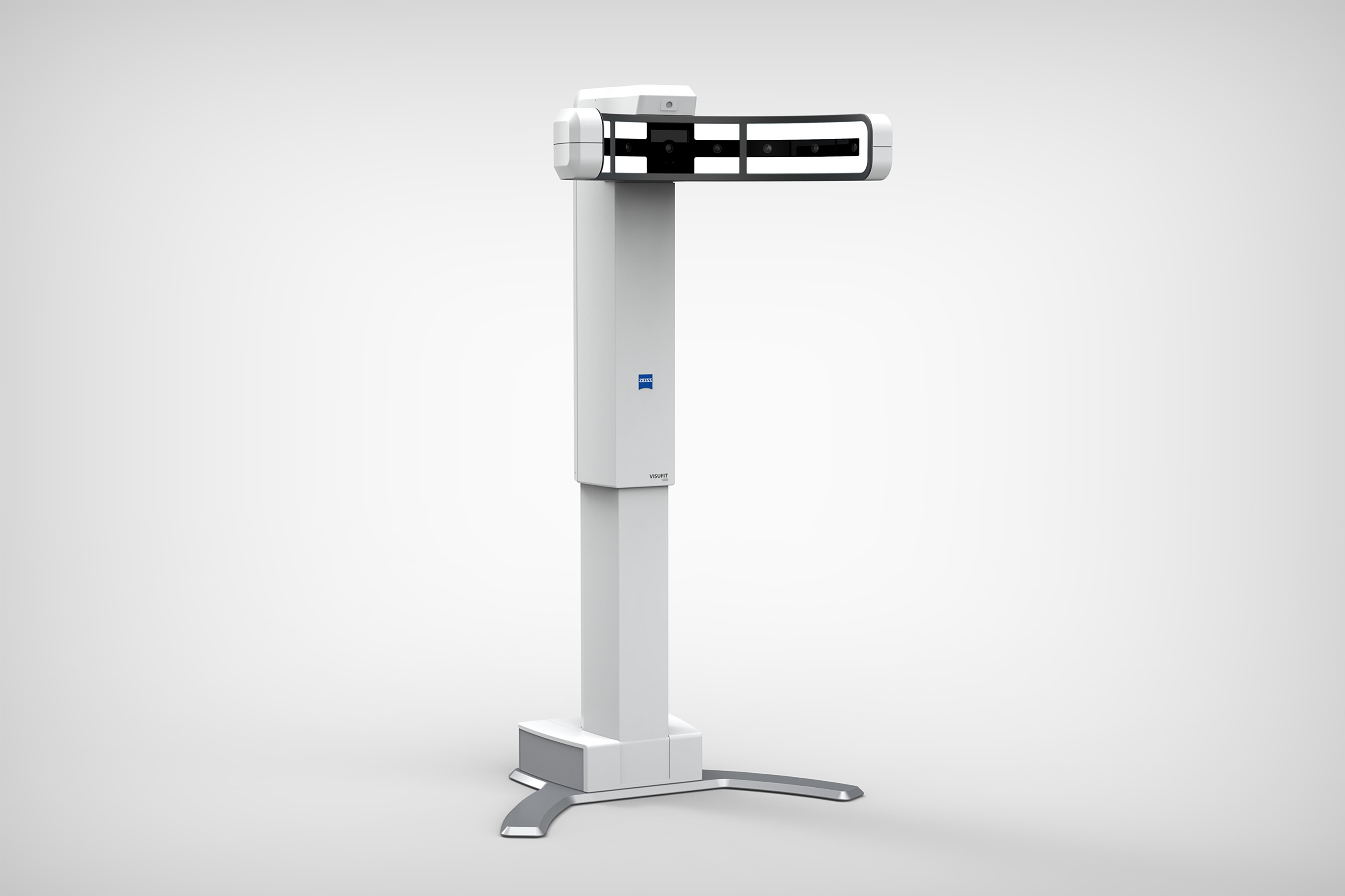 ZEISS VISUFIT 1000 crea una imagen de 180 grados del rostro y las gafas del usuario gracias a sus nueve cámaras y 45 millones de puntos. El cálculo de los datos de centrado se basa en coordinadas 3D. Se trata de una adición extraordinaria a los puntos de medición existentes en el clip de calibración del sistema ZEISS i.Terminal 2 y garantiza una captura extremadamente precisa de los datos de medición de las gafas, los ojos, la pupila y la córnea. La distancia del vértice posterior se puede determinar para ambos lados, el lado derecho y el izquierdo. Además, se puede crear una reconstrucción digital en 3D de la cara del cliente y permite capturar la distancia del vértice posterior, incluso con monturas de varillas muy gruesas. Esta reconstrucción en 3D del rostro del usuario sentará las bases para futuros módulos de ZEISS VISUFIT 1000.
